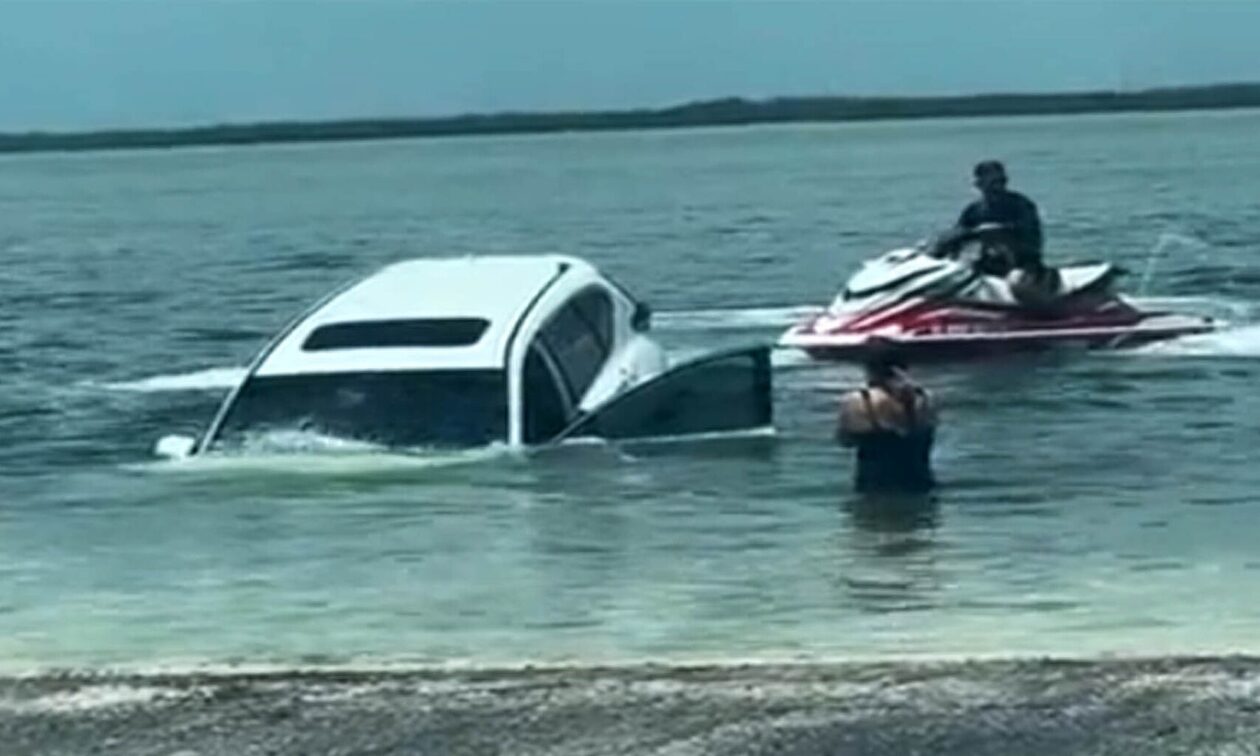 Η οδηγός ενός λευκού Honda CR-V θα το φυσάει και δεν θα κρυώνει μετά το λάθος της που είχε ως αποτέλεσμα το αυτοκίνητό της να πάει στο πάτο της θάλασσας.