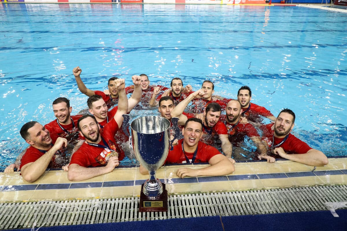 Η απόλυτη επιβράβευση, η κορύφωση στη φετινή προσπάθεια, που οδήγησε σε έναν ακόμα τίτλο στην Α1 ανδρών, καταγράφηκε για την ομάδα πόλο του Ολυμπιακού με την απονομή του επάθλου. Ο αρχηγός Κωνσταντίνος Γενηδουνιάς μαζί με τον Κώστα Μουρίκη και τον Γιάννη Φουντούλη σήκωσαν το τρόπαιο στο Παπαστράτειο μέσα σε αποθέωση. Η ομάδα πανηγύρισε το …