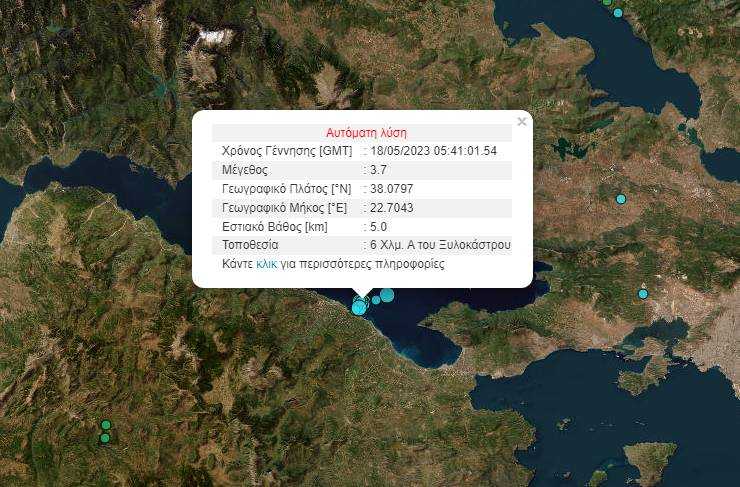 Σύμφωνα με την Αυτόματη Λύση του Γεωδυναμικού Ινστιτούτου Αθηνών ο πρώτος σεισμός ήταν 3,7 Ρίχτερ, 6 χιλιόμετρα Ανατολικά του Ξυλοκάστρου με εστιακό βάθος 5 χιλιόμετρα.