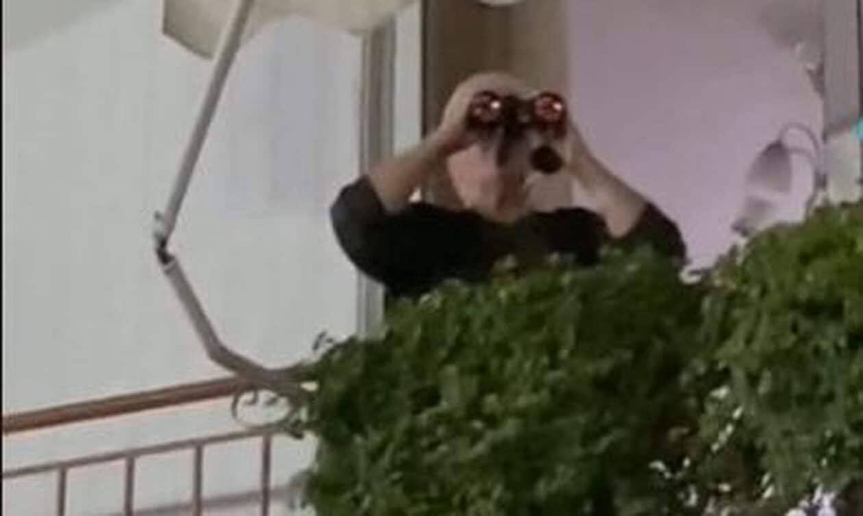 Η εν λόγω ηλικιωμένη βγήκε στο μπαλκόνι της να δει τι συμβαίνει κάτω από το σπίτι της και γενικότερα στη γειτονιά με τα… κιάλια. Το βίντεο έχει τη χιουμοριστική λεζάντα «δεν είναι ότι τον παρακολουθώ, έτυχε και τον είδα».
