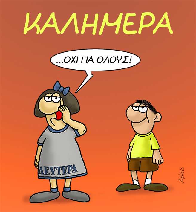 «Καλημέρα» ανέφερε το σκίτσο, με τη Δευτέρα να απαντά: «Όχι για όλους!».