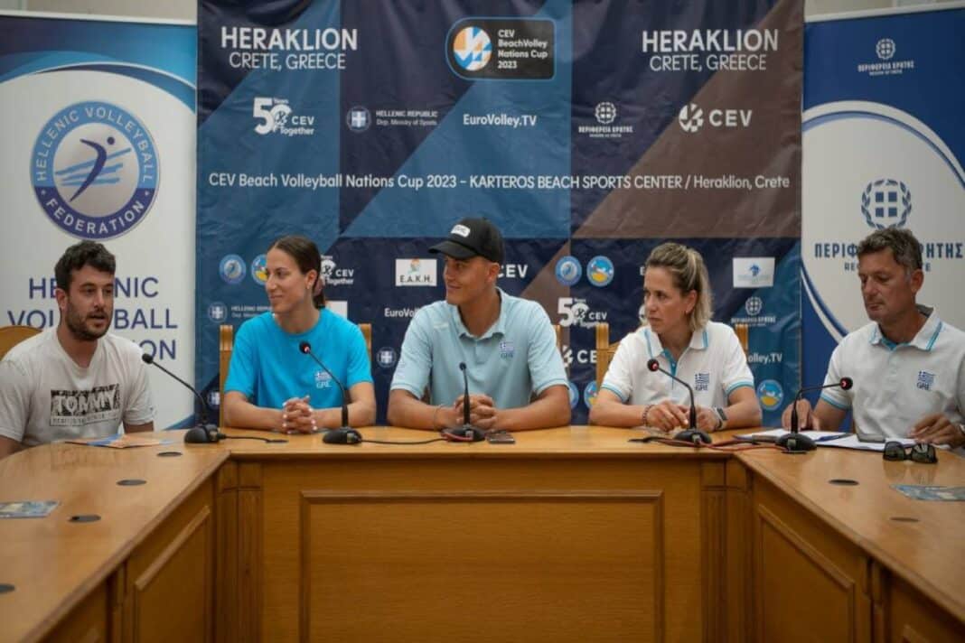 Με την επίσημη συνέντευξη Τύπου στην αίθουσα συνεδριάσεων της Περιφέρειας Κρήτης έγινε το πρώτο σερβίς του CEV Beach Volley Nations Cup, που θα διεξαχθεί το τριήμερο 25-27 στις σύγχρονες και νέες εγκαταστάσεις του Karteros Beach Sports Center. Τους αθλητές εκπροσώπησε ο Σταύρος Ντάλλας, τις αθλήτριες η Δήμητρα Μαναβή και από τους ομοσπονδιακούς προπονητές μίλησαν η …