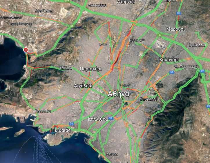 Χαμηλές ταχύτητες σημειώνονται και επί της λεωφόρου Ποσειδώνος (Αλίμου έως Καραϊσκάκη -ρεύμα προς Πειραιά).