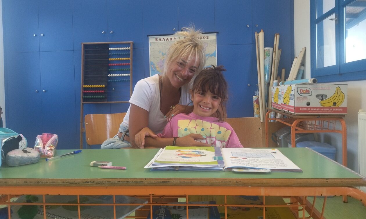 Η νεαρή δασκάλα διορίστηκε στην Ηρακλειά πέρυσι και είχε δύο παιδιά στο σχολείο. Μεγάλωσαν όμως, το ένα έπρεπε να φοιτήσει στο γυμνάσιο και έτσι μετακόμισε η οικογένεια στη Νάξο και έμεινε μόνο με την κόρη της που συμπλήρωσε το έκτο έτος και φέτος είναι στην πρώτη δημοτικού.