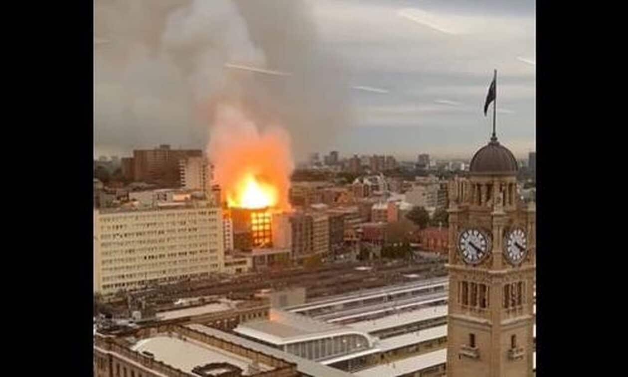 Τηλεοπτικές εικόνες δείχνουν πυροσβέστες να προσπαθούν να κατασβέσουν την πυρκαγιά σε κτίριο το οποίο βρίσκεται κοντά στον κεντρικό σιδηροδρομικό σταθμό του Σίδνεϊ. Ένα σταθμευμένο αυτοκίνητο έχει τυλιχθεί επίσης στις φλόγες.