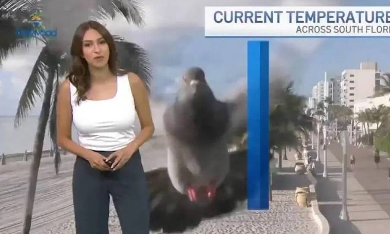 «Θεέ μου, με τρόμαξε» αναφώνησε η μετεωρολόγος όταν είδε το περιστέρι να μοιάζει τεράστιο ενώ πλησίαζε στην κάμερα.