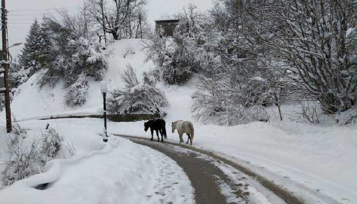 Έξω από τη Μηλιά Μετσόβου, δύο άλογα απαθανατίστηκαν να βαδίζουν μόνα στον χιονισμένο επαρχιακό δρόμο μέσα στην απόλυτη ηρεμία, απουσία κάθε ανθρώπινης παρουσίας.Οι λήψεις εκπληκτικές.