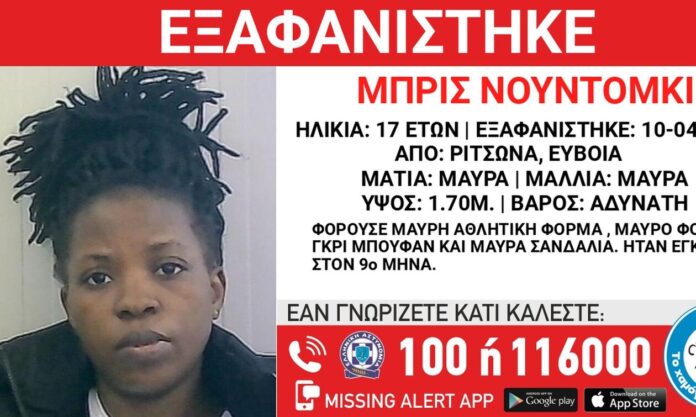 Συνεχίζεται η αναζήτηση της Μπρις Νουντόμκι 17 ετών, με καταγωγή από το Καμερούν, καθώς η ανήλικη δεν έχει εντοπιστεί ακόμα με το Χαμόγελο του Παιδιού να συνεχίζει τις ενέργειες για τον εντοπισμό της.