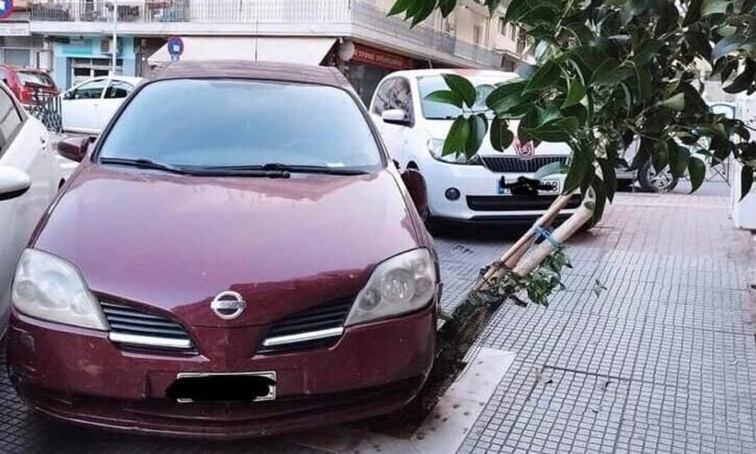 Θεσσαλονίκη: Ασυνείδητος οδηγός πάρκαρε το ΙΧ του πάνω σε κορμό δέντρου – Μήνυση από τον Δήμο