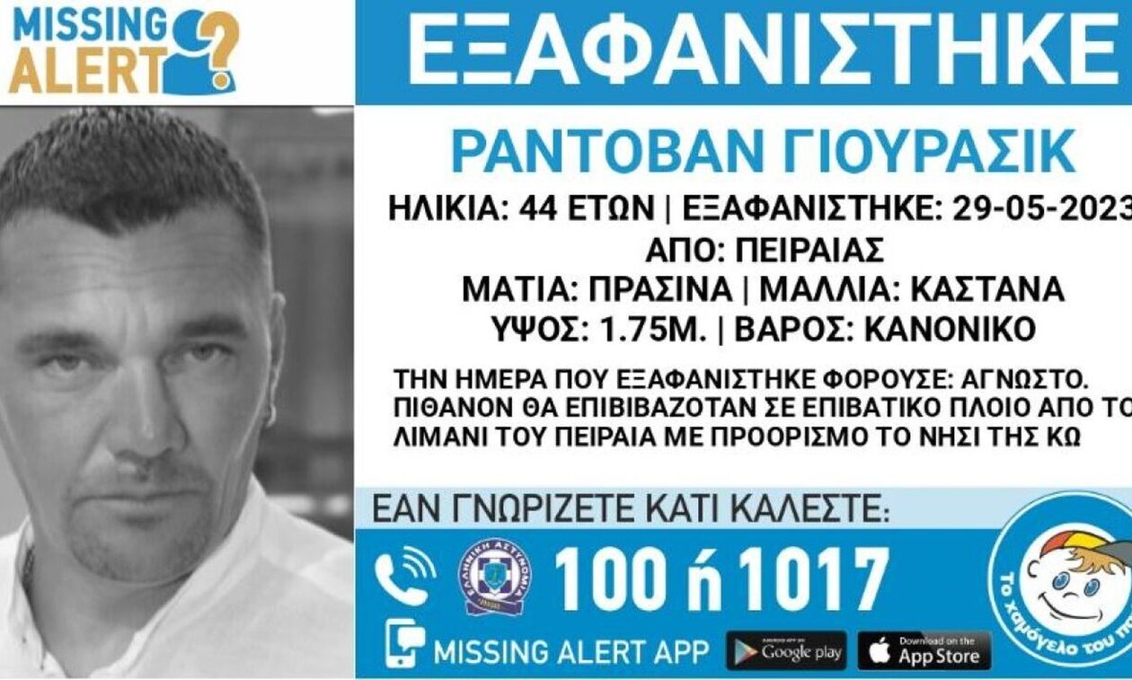 Το όνομα του 44χρονου είναι Ράντοβαν Γιουράσικ και εξαφανίστηκε τη Δευτέρα, 29 Μαΐου 2023 από την περιοχή του Πειραιά.