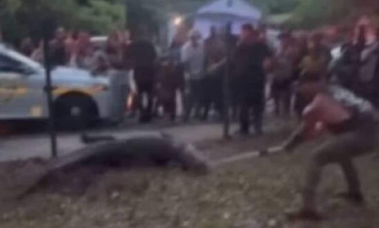 Ο θαρραλέος Mike Dragich πρώην πεζοναύτης και αδειούχος παγιδευτής αλιγάτορα δεν δίστασε να αντιμετωπίσει το τεράστιο ερπετό, με δεκάδες να παρακολουθούν τη μάχη και να ουρλιάζουν παράλληλα από φόβο.