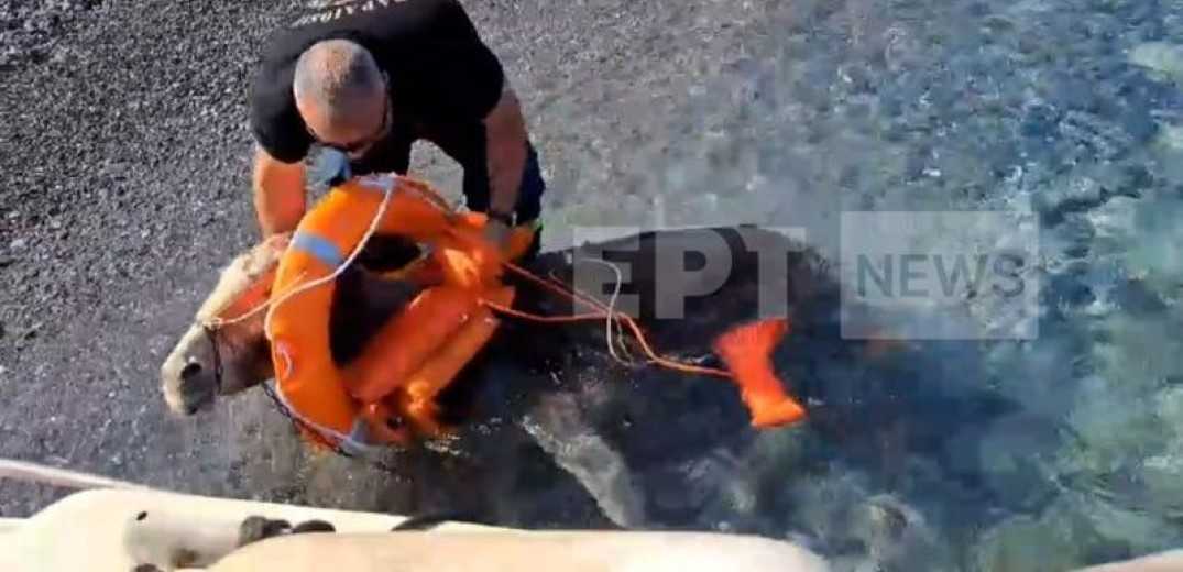 Ήταν μια πραγματικά δύσκολη και συνάμα πρωτόγνωρη επιχείρηση τόσο για τους άνδρες του λιμενικού, του πυροσβεστικού κλιμακίου, του φορέα διαχείρισης, αλλά και των εθελοντών, οι οποίοι με ιδιαίτερη ευαισθησία και προσοχή κατάφεραν να μεταφέρουν σε ασφαλές σημείο τα δύο ζώα.