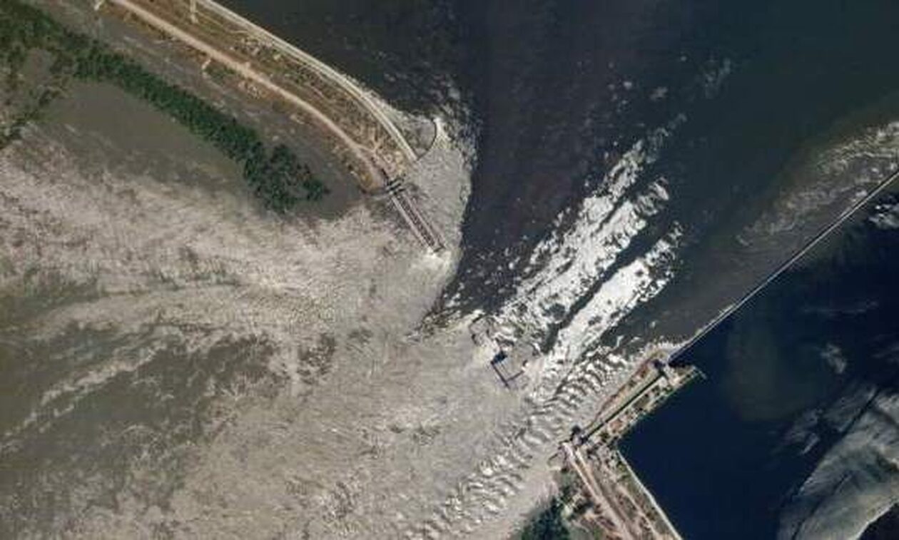 Στη δημοσιότητα δίνονται σταδιακά οι πρώτες δορυφορικές εικόνες από την ανατίναξη του φράγματος στον υδροηλεκτρικό σταθμό Νόβα Καχόβκα.