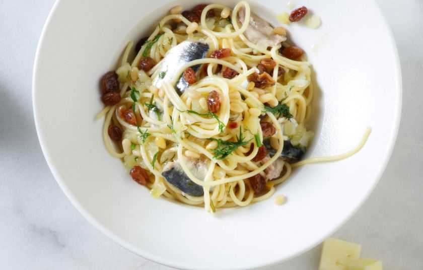 Προμηθευόμαστε έτοιμα φιλέτα σαρδέλας από το σούπερ μάρκετ και μέσα σε 25 λεπτά έχουμε μια νόστιμη και θρεπτική μακαρονάδα. Ο άνηθος, το λευκό κρασί και το κουκουνάρι θα προσθέσουν έξτρα νοστιμιά.