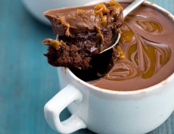 Βάλτε την κούπα στο φούρνο μικροκυμάτων. Αφήστε το να ψηθεί για 70 δευτερόλεπτα ή ένα λεπτό στη μέγιστη ένταση (maximum) ανάλογα το φούρνο σας. Δοκιμάστε να το σερβίρετε με παγωτό!