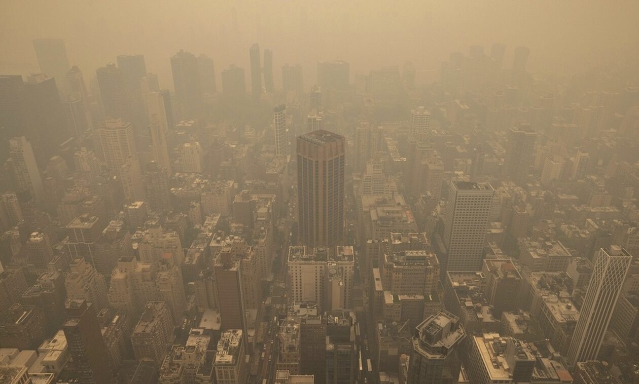 Ο διάσημος ορίζοντας της Νέας Υόρκης έχει χάσει το χρώμα του, ο αέρας μυρίζει σαν αναμμένο ξύλο. Ολόκληρη η ανατολική ακτή των ΗΠΑ είναι καλυμμένη με ένα πέπλο καπνού από τις πυρκαγιές του Καναδά. Σε ορισμένες περιοχές, ο δείκτης ποιότητας του αέρα, ο οποίος μετρά τους σημαντικούς ρύπους που παράγονται από τις πυρκαγιές, ήταν πολύ πάνω από 400, σύμφωνα με την Airnow, η οποία περιγράφει το 100 ως «ανθυγιεινό» και το 300 ως «επικίνδυνο».