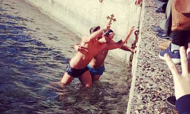 Ένας από τους τολμηρούς ήταν και ο Γιώργος Μανίκας, ο οποίος με τον γιο του Άγγελο βρέθηκε στα Αντίκυρα της Βοιωτίας και δεν δίστασε σήμερα παρόλο που είχε 2 βαθμούς κελσίου στην περιοχή, να βάλει το μαγιό του, να βουτήξει και να πιάσει τον Σταυρό!
