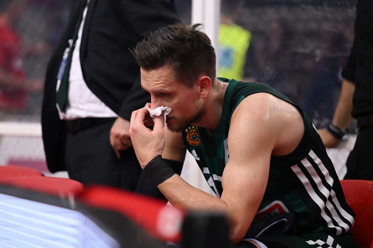 Μετά τον τραυματισμό του Μάριους Γκριγκόνις ο Παναθηναϊκός είχε και απρόοπτο με τον Ματέους Πονίτκα. Συγκεκριμένα ο Πολωνός φόργουορντ δέχτηκε ένα χτύπημα στη μύτη που του προκάλεσε αιμορραγία με συνέπεια να πάει στα αποδυτήρια. Μάλλον ο παίκτης του Παναθηναϊκού δεν θα ξαναγωνιστεί στο ματς αφού απομένει μόνο η τελευταία περίοδος.