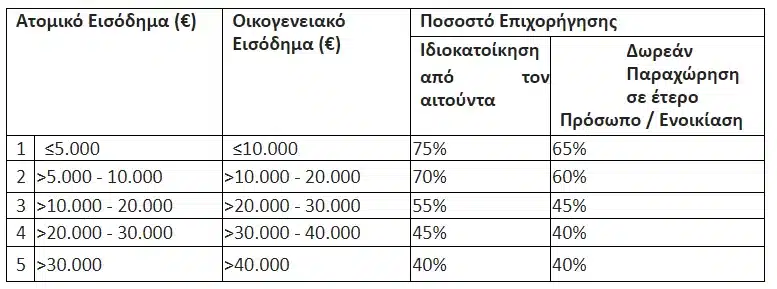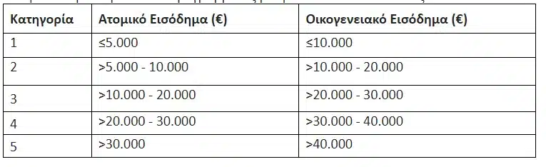 Δυνητικοί ωφελούμενοι του προγράμματος μπορεί να είναι οι αιτούντες που εντάσσονται στις παρακάτω εισοδηματικές κατηγορίες:
