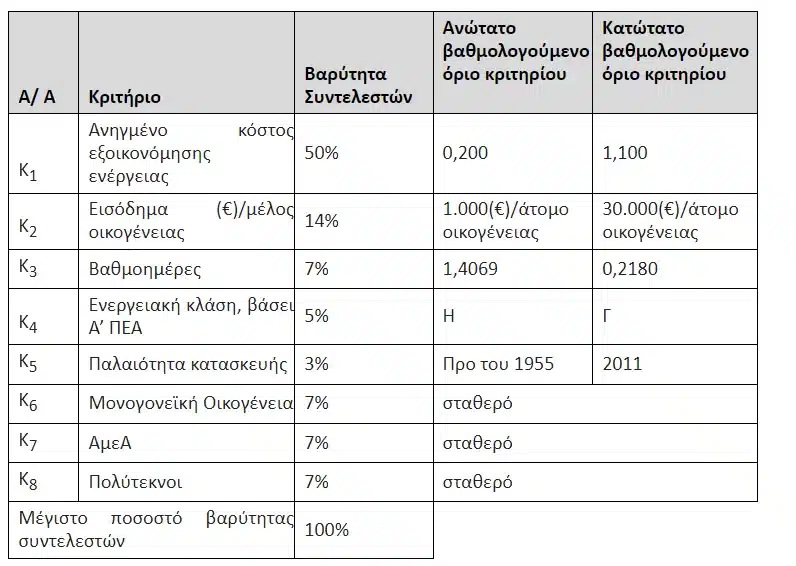Κριτήρια για τη βαθμολόγηση των αιτήσεων: