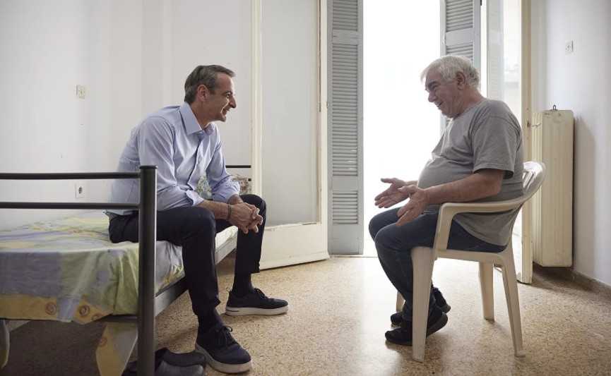 Ο Κυριάκος Μητσοτάκης συνάντησε μπροστά από τις τηλεοπτικές κάμερες τον πρώην άστεγο Κώστα Ζ.