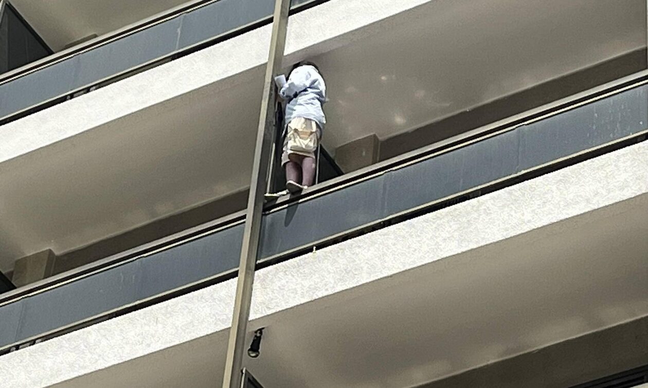 Για τη διάσωσή της στήθηκε μεγάλη επιχείρηση από τις Αρχές, με την Πυροσβεστική να τοποθετεί δίχτυ ασφαλείας, την ώρα που ειδικός διαπραγματευτείς προσπαθούσε να την πείσει να κατέβει από το περβάζι του μπαλκονιού.
