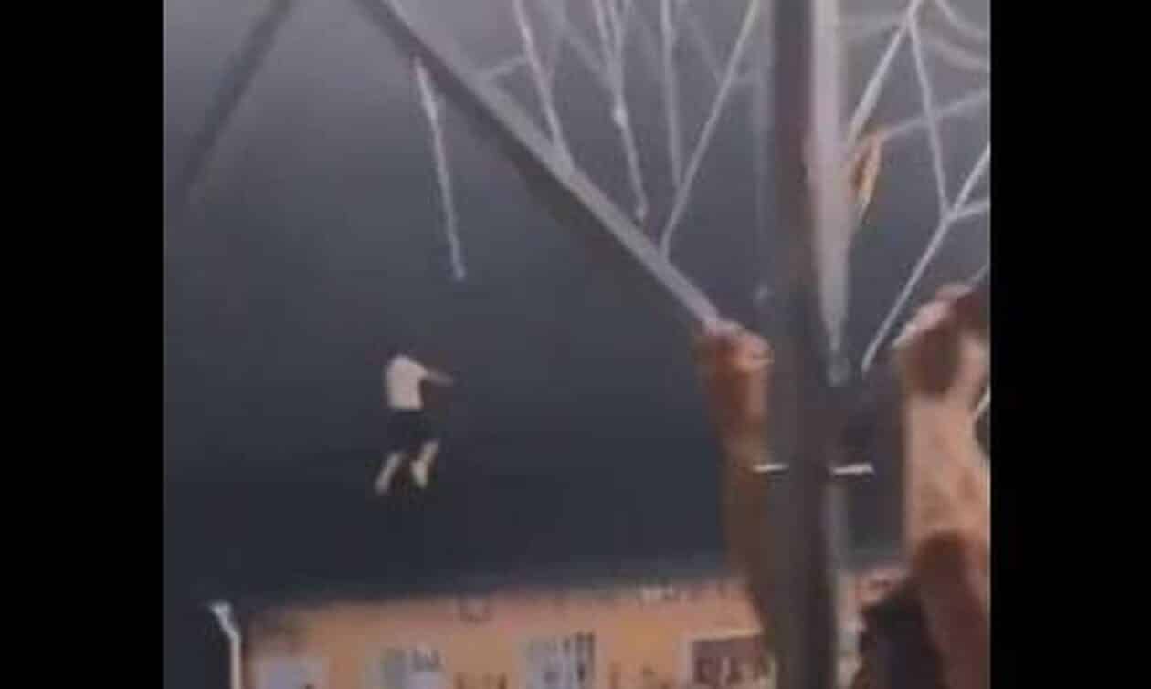 Ωστόσο, το πιο τρομακτικό δεν είναι η τέντα που βρέθηκε στον αέρα αλλά οι ανθρωποι που εκτοξεύτηκαν, αφού – μάταια – προσπάθησαν να την κρατήσουν.