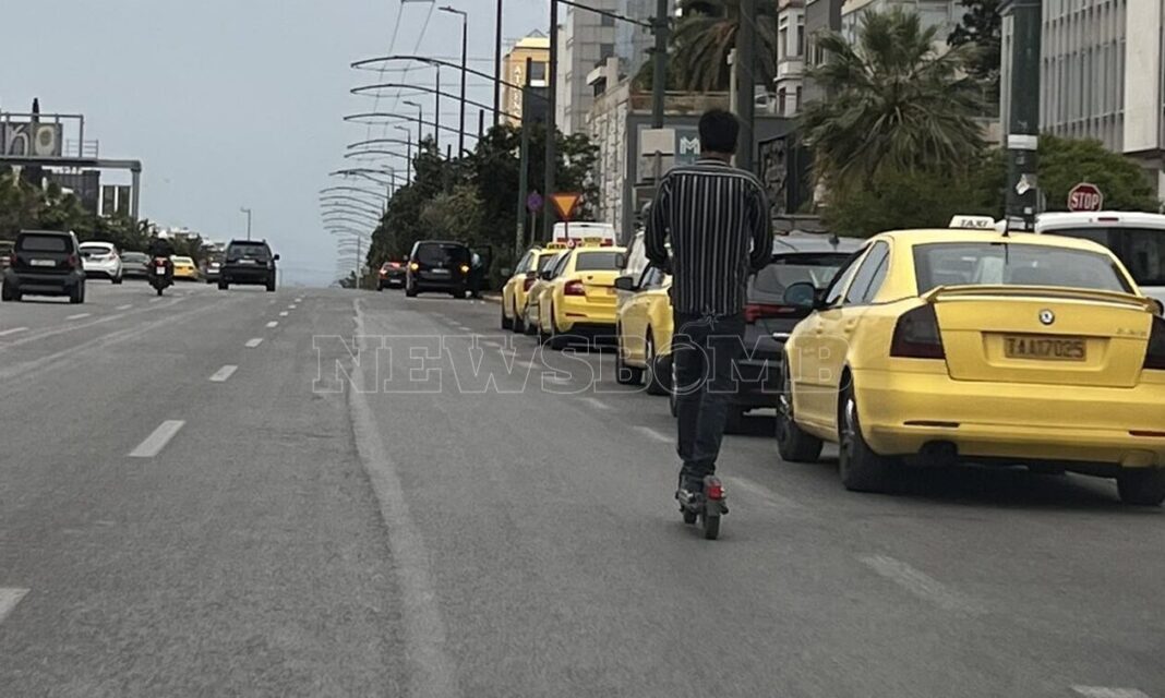 Κίνδυνος-θάνατος για άνδρα που διασχίζει με… πατίνι τη λεωφόρο Συγγρού (vid)