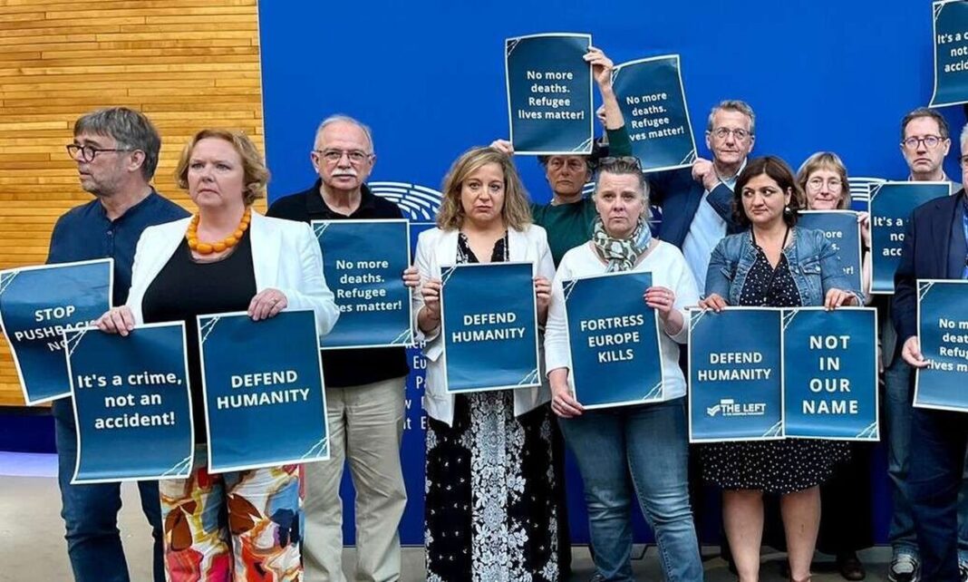 Ο αντιπρόεδρος του ευρωπαϊκού κοινοβουλίου Δημήτρης Παπαδημούλης, μαζί με από ευρωβουλευτές της Αριστεράς, των Πρασίνων και των Σοσιαλιστών, μεταξύ των οποίων οι Κώστας Αρβανίτης και Έλενα Κουντουρά, φωτογραφήθηκε κρατώντας αφίσες με το μήνυμα «όχι άλλοι θάνατοι. Οι ζωές των προσφύγων έχουν αξία».