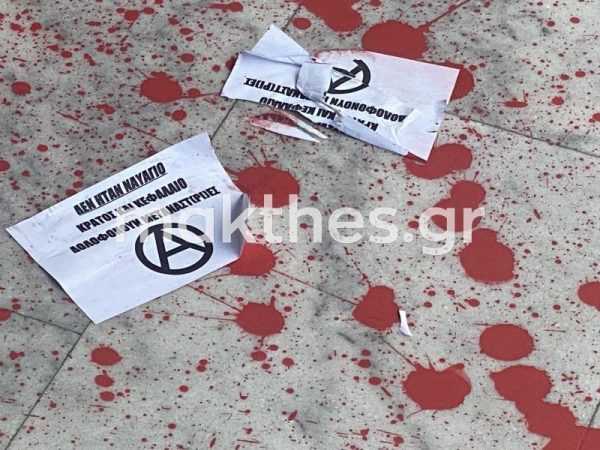 Ειδικότερα άγνωστοι πέταξαν κόκκινο χρώμα αλλά και τρικάκια στην είσοδο της υπηρεσίας, σε ένδειξη οργής για το τραγικό ναυάγιο της Πύλου, με θύματα πρόσφυγες και μετανάστες.