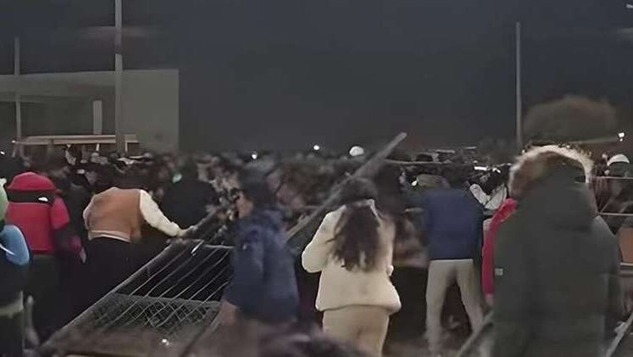 Εικόνες που κυκλοφόρησαν σε ιστότοπους κοινωνικής δικτύωσης εικονίζουν δεκάδες ανθρώπους, καθώς προσπαθούν να φύγουν σπρώχνοντας μεταλλικές μπαριέρες.
