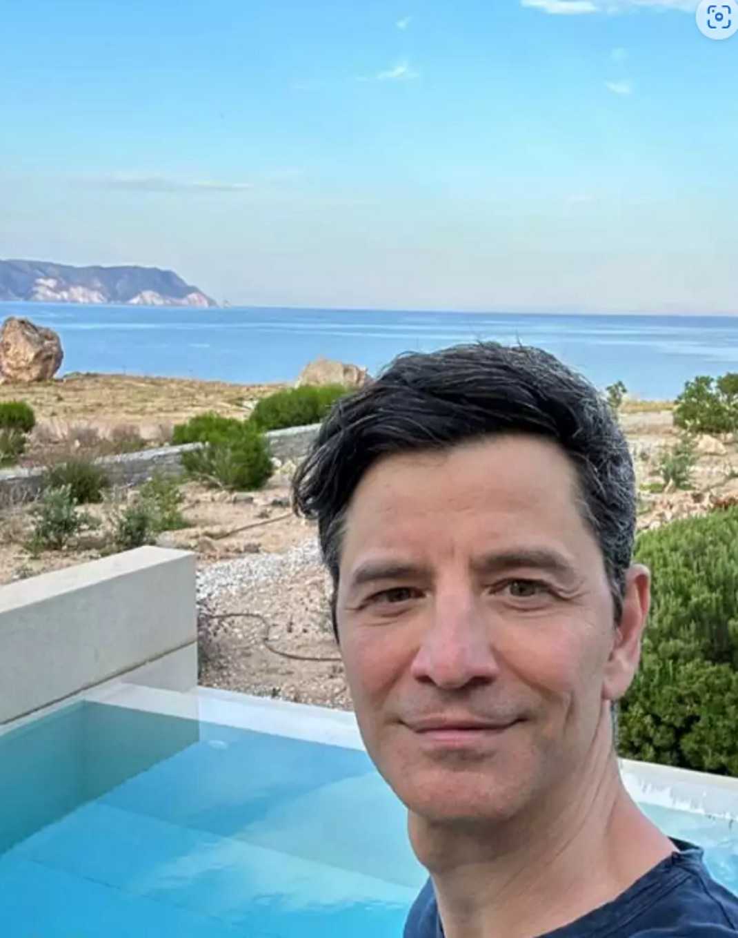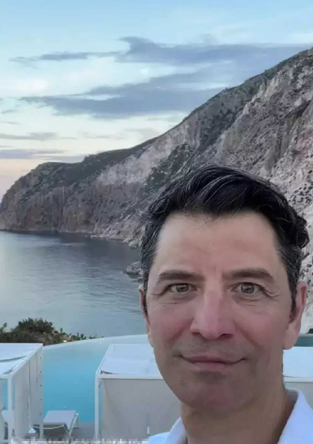 Στις φωτογραφίες που δημοσίευσε ο τραγουδιστής σε Instagram Story φαίνεται το υπέροχο γαλάζιο τοπίο του κυκλαδίτικου νησιού, ενώ σε επόμενο στιγμιότυπο ποζάρει στο πλευρό της αγαπημένης του, Κάτιας Ζυγούλη.