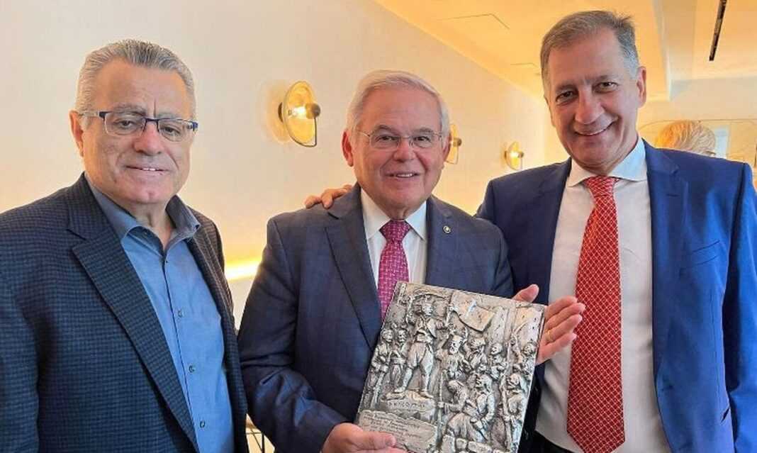 «This honorary membership presented to Senator Robert Menendez for the outstanding support to Greece».