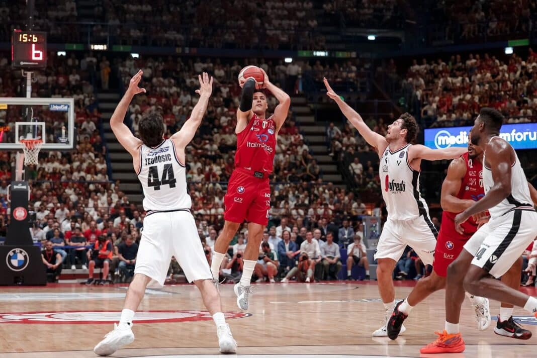 Η Ολίμπια Μιλάνο πήρε προβάδισμα τίτλου στο «Φόρουμ» απέναντι στη Βίρτους και απέχει πλέον μία νίκη από την κατάκτηση του ιταλικού πρωταθλήματος. Η ομάδα του Μεσίνα πάτησε γκάζι στο β’ δεκάλεπτο (38-29) ωστόσο δεν κατάφερε να ξεφύγει περισσότερο σε αυτό το διάστημα (42-37 ημίχρονο). Οι γηπεδούχοι ήταν καλύτεροι και στη γ’ περίοδο με το 56-43 …