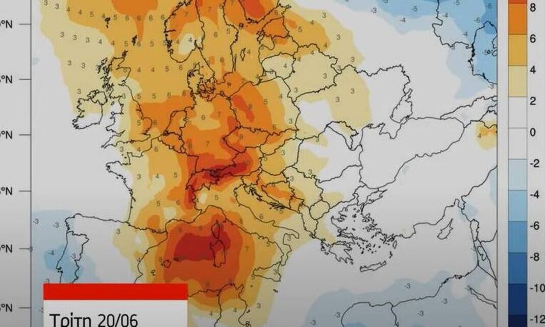 Στο βίντεο που ακολουθεί παρουσιάζεται η απόκλιση της θερμοκρασίας από την μέση τιμή της περιόδου 1979-2010 σε ύψος 1500 μέτρων περίπου έως και την Κυριακή 25/06.