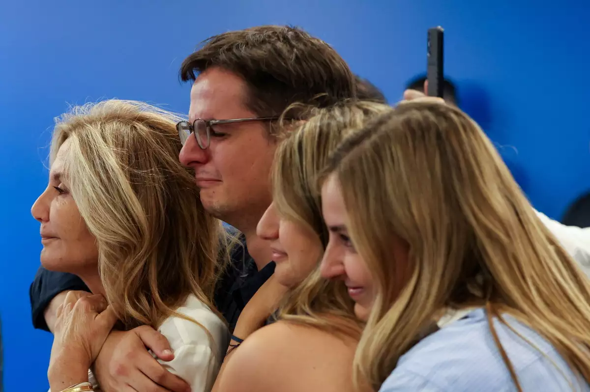 Η Μαρέβα Γκραμπόφσκι, οι δύο κόρες του Σοφία και Δάφνη Μητσοτάκη, αλλά και ο γιος του, Κωνσταντίνος ήταν μαζί με τον Κυριάκο Μητσοτάκη καθ’ όλη τη διάρκεια της υποδοχής των αποτελεσμάτων. Μάλιστα, σε φωτογραφικό στιγμιότυπο που θα δεις παρακάτω, ο Κωνσταντίνος Μητσοτάκης – ο πιο θερμός άνδρας υποστηρικτής του πατέρα του- δεν έκρυψε τα δάκρυά του.