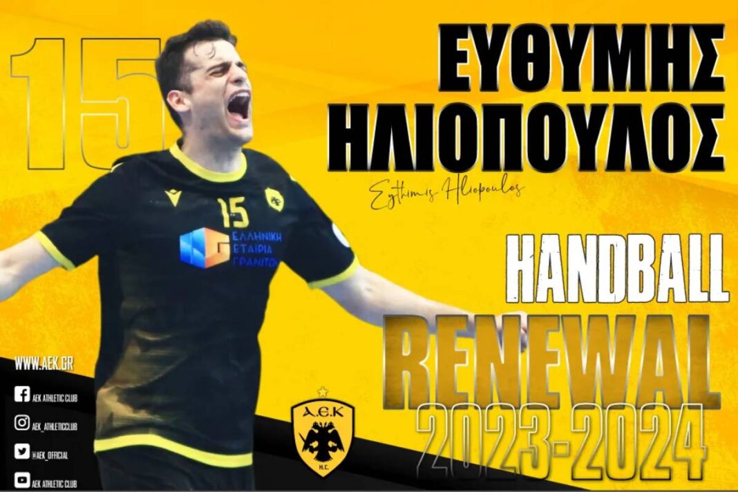 Η ανδρική ομάδα χάντμπολ της ΑΕΚ ανακοίνωσε την ανανέωση της συνεργασίας της με τον Ευθύμη Ηλιόπουλου, για ένα χρόνο. Η ανακοίνωση της Ένωσης αναφέρει: «Η ΑΕΚ βρίσκεται στην ευχάριστη θέση να ανακοινώσει την ανανέωση της συνεργασίας της με τον Ευθύμη Ηλιόπουλο. Ο 26χρονος (16/12/1996) αριστερόχειρας ίντερ, ύψους 1,95 μ., υπέγραψε νέο μονοετές συμβόλαιο και θα …