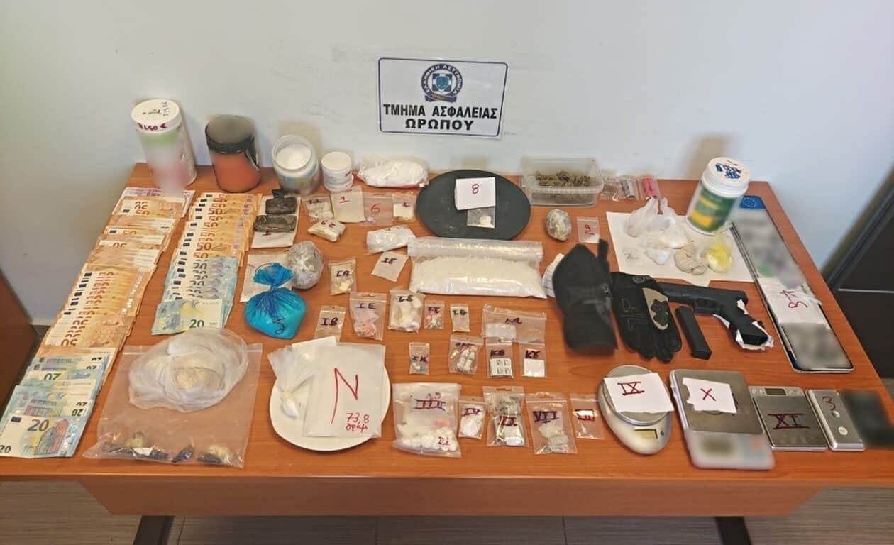 Στη συνέχεια, και τα τρία άτομα οδηγήθηκαν στο Τμήμα Ασφαλείας Ωρωπού, το οποίο επελήφθη προανακριτικά. Ύστερα από έρευνα που πραγματοποιήθηκε στην οικία των συλληφθέντων στο Παλαιό Φάληρο, βρέθηκαν συνολικά και κατασχέθηκαν: