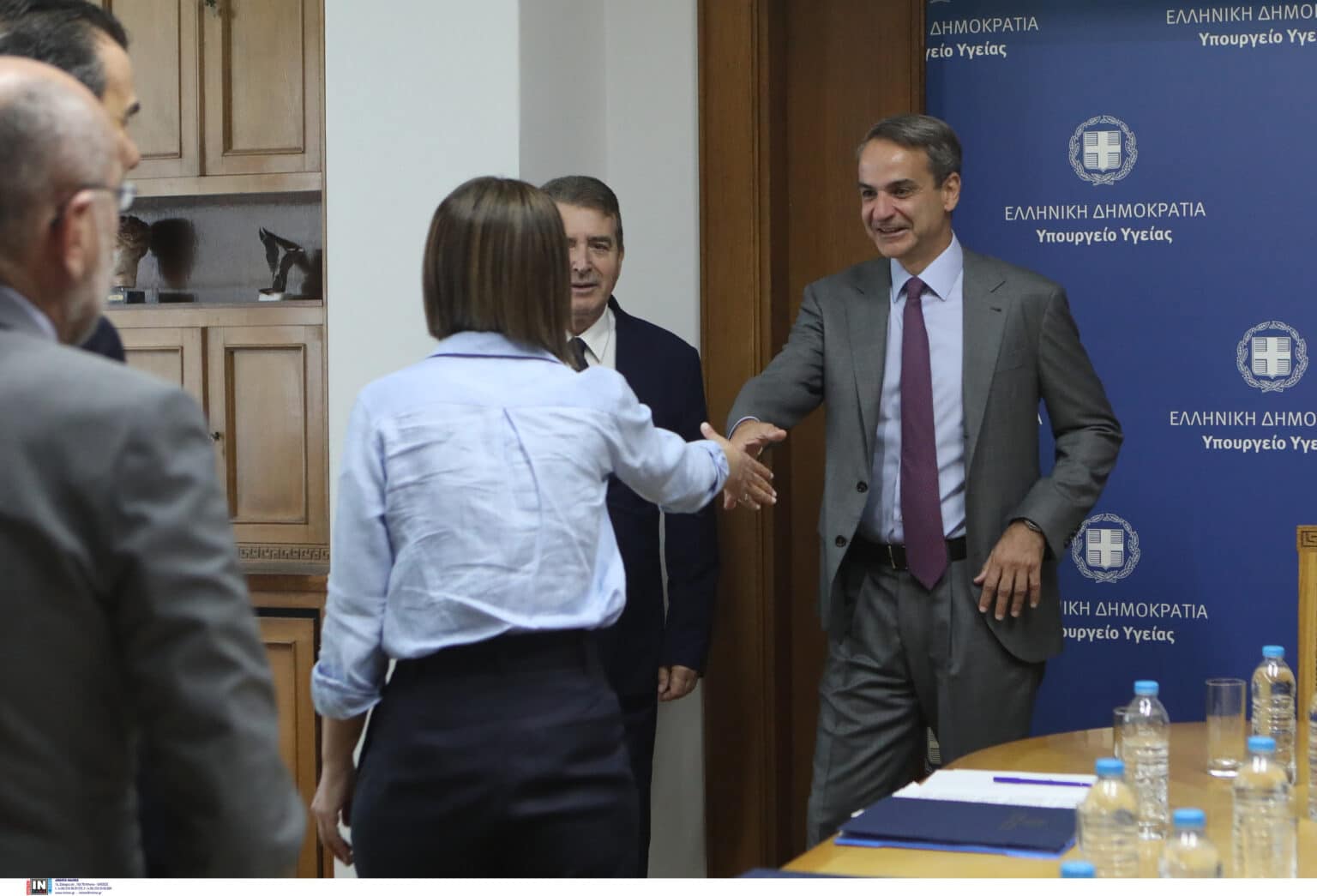 «Είχαμε μια πολύ παραγωγική πρώτη σύσκεψη με τη νέα ηγεσία του υπουργείου Υγείας. Να ευχηθώ και εδώ, σε έναν χώρο ο οποίος και εμένα μου είναι -πρέπει να σας πω- αρκετά οικείος, καλή δύναμη και καλή επιτυχία», ανέφερε ο πρωθυπουργός Κυριάκος Μητσοτάκης σε δηλώσεις του κατά την επίσκεψή του σήμερα το πρωί στο υπουργείο Υγείας.