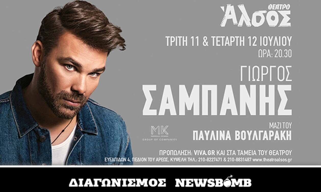 Το Newsbomb.gr δίνει την ευκαιρία στους αναγνώστες του να κερδίσουν διπλές προσκλήσεις για τις δύο εμφανίσεις του Γιώργου Σαμπάνη στο Θέατρο Άλσος.