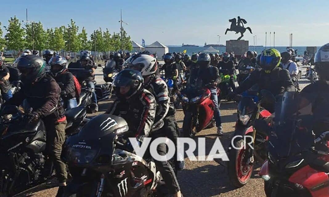 Εκατοντάδες μηχανόβιοι συμμετείχαν στη μεγάλη πορεία που ξεκίνησε από το άγαλμα του Μεγάλου Αλεξάνδρου, στην παραλία της Θεσσαλονίκης, και κατέληξε στο Σοχό