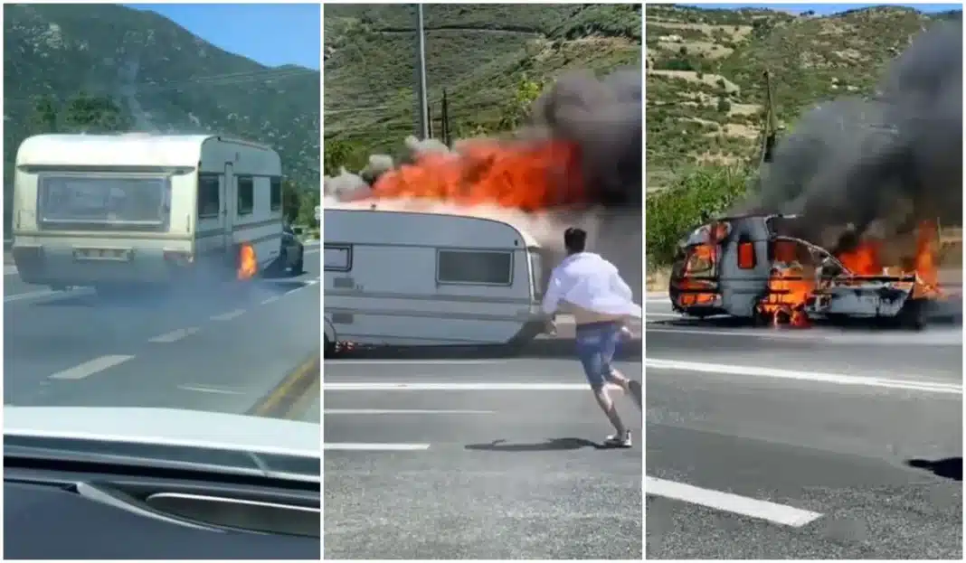 Τελικά, σταμάτησε λίγο αργότερα απέναντι από ένα πρατήριο βενζίνης, με τον οδηγό να αποσυνδέει από το αυτοκίνητό του το τροχόσπιτο, το οποίο κάηκε ολοσχερώς όπως θα δείτε στο βίντεο.
