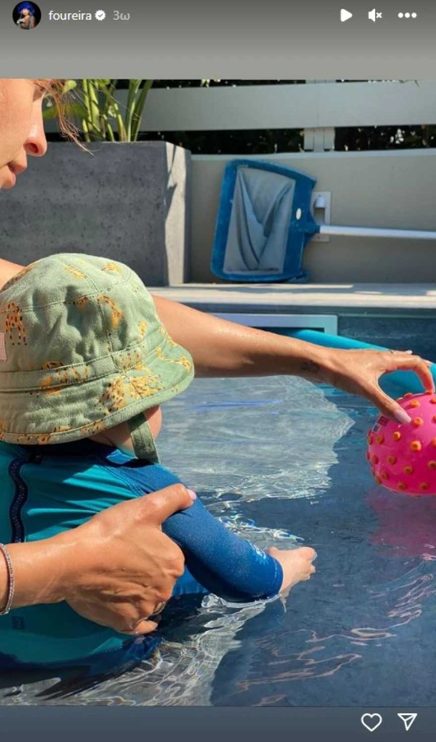 Το μεσημέρι της Τρίτης, η δημοφιλής τραγουδίστρια ανέβασε ένα story στον προσωπικό της λογαριασμό στο Instagram, στο οποίο είναι μαζί με τον γιο της και παίζουν στην πισίνα.