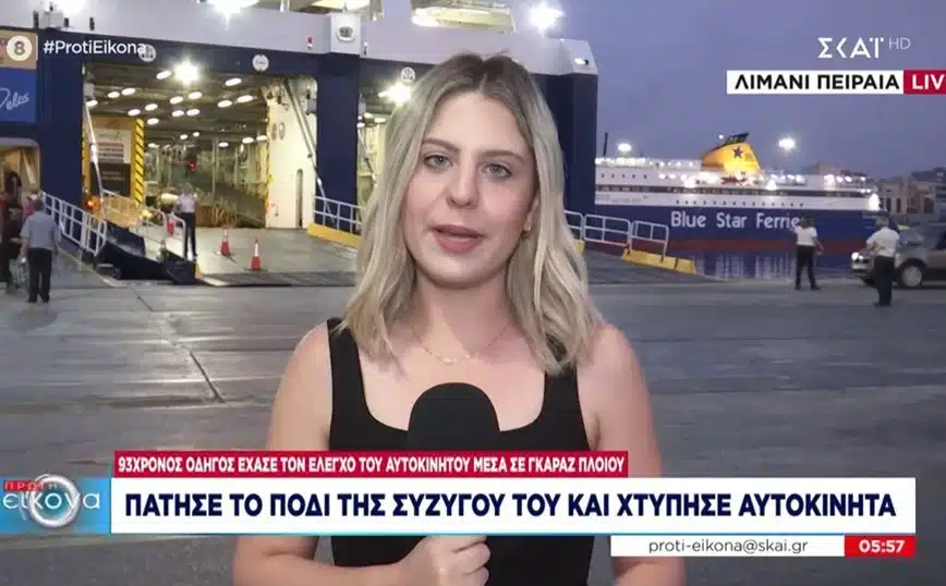 Πιο αναλυτικά, ένας 93χρονος οδηγός, έχασε τον έλεγχο του αυτοκινήτου του μέσα στο γκαράζ του πλοίου με αποτέλεσμα να χτυπήσει 6 αυτοκίνητα και να τραυματίσει την σύζυγό του, καθώς της πάτησε το πόδι, με το όχημά τους. Ο 93χρονος σύμφωνα με πληροφορίες διαθέτει ελληνική και διεθνή άδεια οδήγησης, ενώ υποστηρίζει πως «κόλλησε» το πόδι του στο γκάζι.
