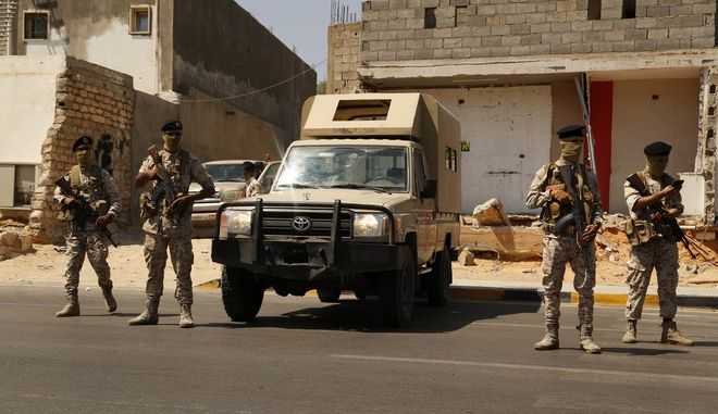 Δυο κυβερνήσεις συνεχίζουν να ανταγωνίζονται για την εξουσία: η μια είναι εγκατεστημένη στην Τρίπολη (δυτικά), αναγνωρίζεται από τον ΟΗΕ κι έχει επικεφαλής τον Αμπντελχαμίντ Ντμπάιμπα, η άλλη εδρεύει στην ανατολή κι υποστηρίζεται από τον ισχυρό στρατάρχη Χαλίφα Χάφταρ.