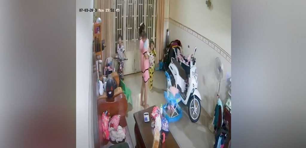 Το περιστατικό συνέβη στις 3 Ιουλίου στην πρωτεύουσα της Πνομ Πεν. Όλα κυλούσαν ήρεμα για την Pip Srey, η οποία – όπως φαίνεται και στο βίντεο – κρατούσε στην αγκαλιά της ένα μωρό, ενώ στο δωμάτιο βρίσκονται άλλα τρία μικρά παιδιά, μέχρι που ξαφνικά ακούστηκε ένας περίεργος ήχος.