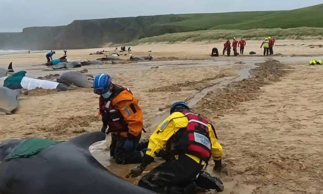 Τουλάχιστον 55 μαυροδέλφινα εξόκειλαν σε μια παραλία στο νησί Λιούς και Χάρις της δυτικής Σκωτίας και τα περισσότερα από αυτά βρέθηκαν νεκρά, όπως ανέφεραν οι διασώστες.