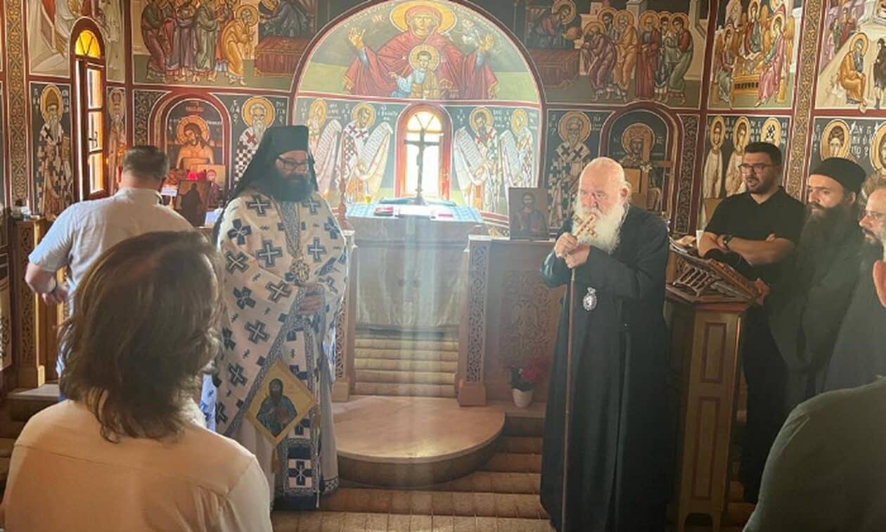Ο αρχιεπίσκοπος συμπροσευχήθηκε στη Θεία Λειτουργία που τέλεσε ο καθηγούμενος της Ιεράς Μονής του Οσίου Λουκά π. Σεραφείμ Παυλίδης μαζί με άλλους ιερείς της Μονής. Το μοναστηριακό κάθισμα στη νήσο Άμπελο αναγέννησε τη δεκαετία του ’80 ο ίδιος ο αρχιεπίσκοπος και με τη μέριμνά του μέχρι σήμερα παραμένει επισκέψιμο και σε άριστη κατάσταση.
