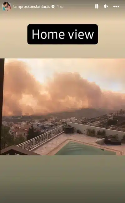 Ο Λάμπρος Κωνσταντάρας δημοσίευσε ένα story με την εικόνα από το πύρινο μέτωπο όπως διακρίνονταν από την πισίνα του σπιτιού του, ένα θέαμα πραγματικά αποκαλυπτικό.