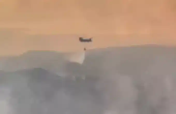 Από τη φωτιά στο Λουτράκι, δείτε πλάνα από το Σινούκ που επιχειρεί στο σημείο της κατάσβεσης, τόσο έξω όσο και μέσα από το ελικόπτερο.